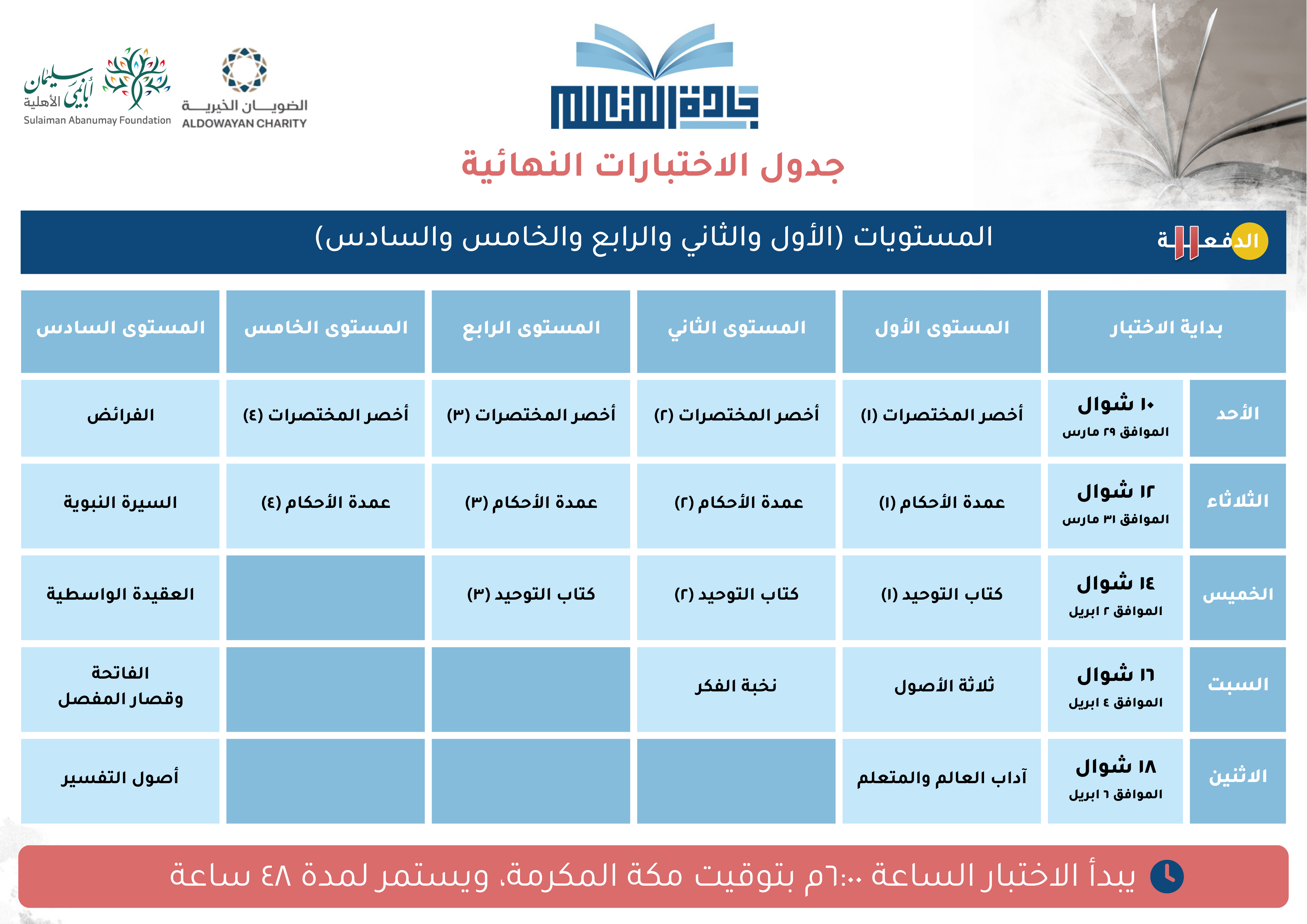 مواعيد الاختبارات النهائية لبرنامج جادة المتعلم